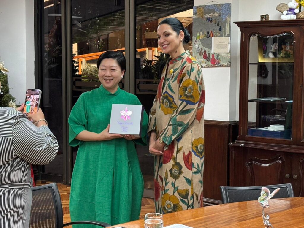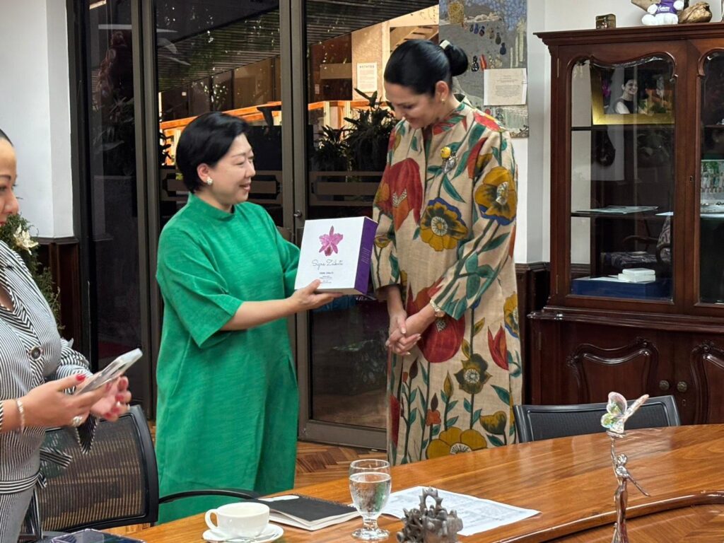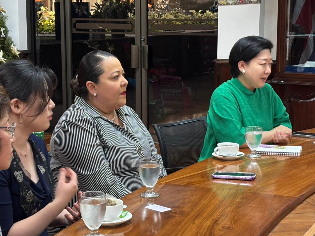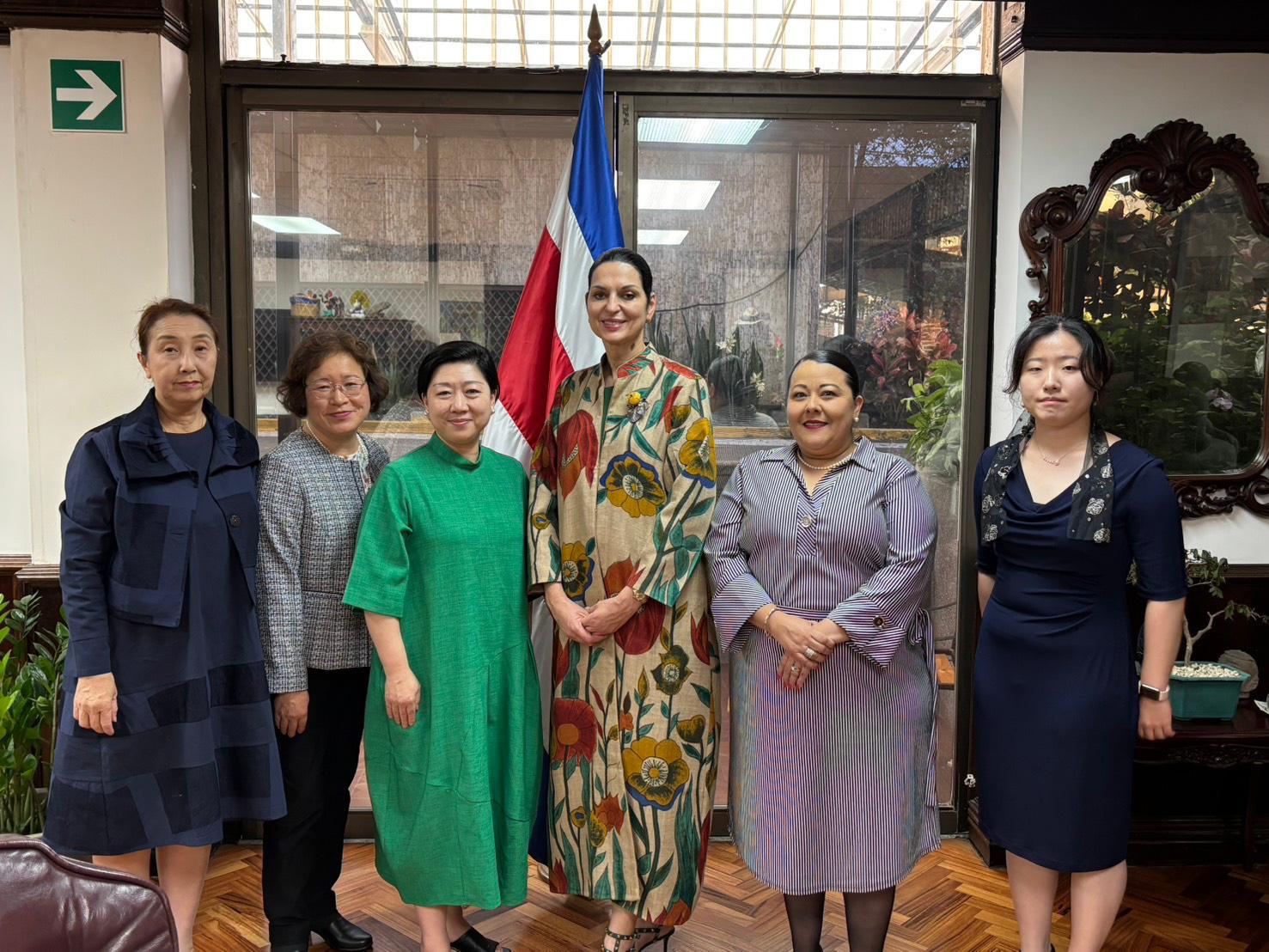 Durante su visita a Costa Rica fue recibida por la Primera Dama de Costa Rica, la Sra Signe Zeikate, donde aparte de mostras sus respecto e intercambiar algunos presentes, conversaron sobre las actividades que realiza la Federación a nivel mundial, las actividades realizadas en Costa Rica para apoyar y acompañar a las mujeres en temas emocionales y la posibilidad de obtener apoyo internacional para fortalecer proyectos futuros en Costa Rica, en temas como la educación para las mujeres y niños.